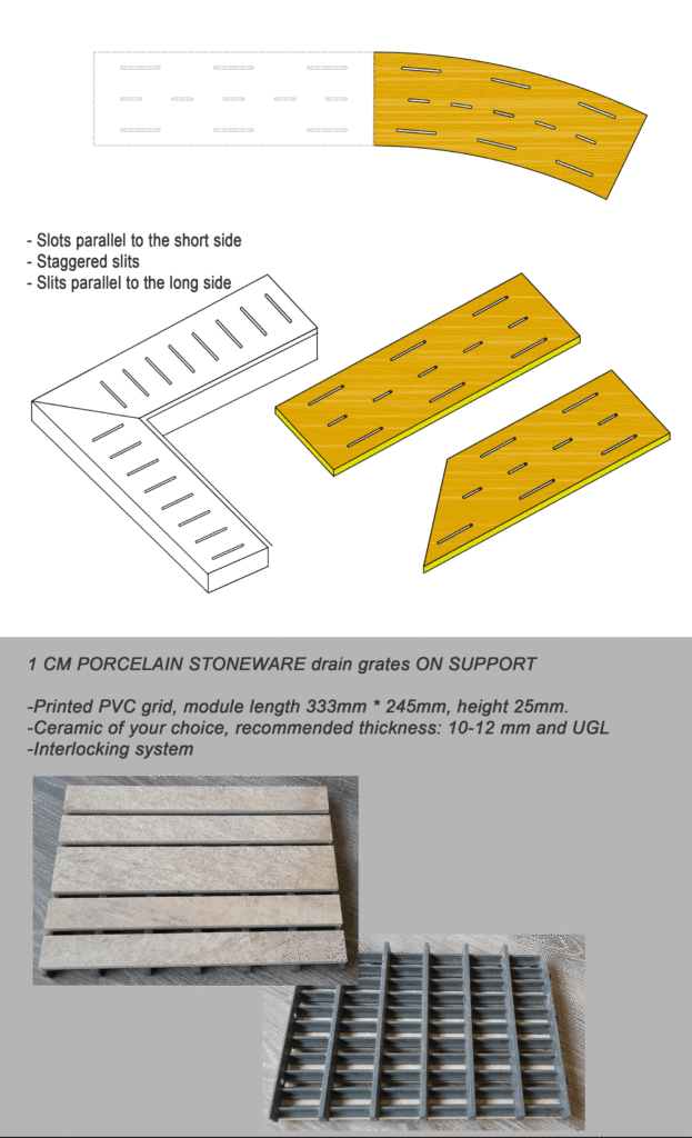 2 CM PORCELAIN STONEWARE drain grates and grates on PVC support