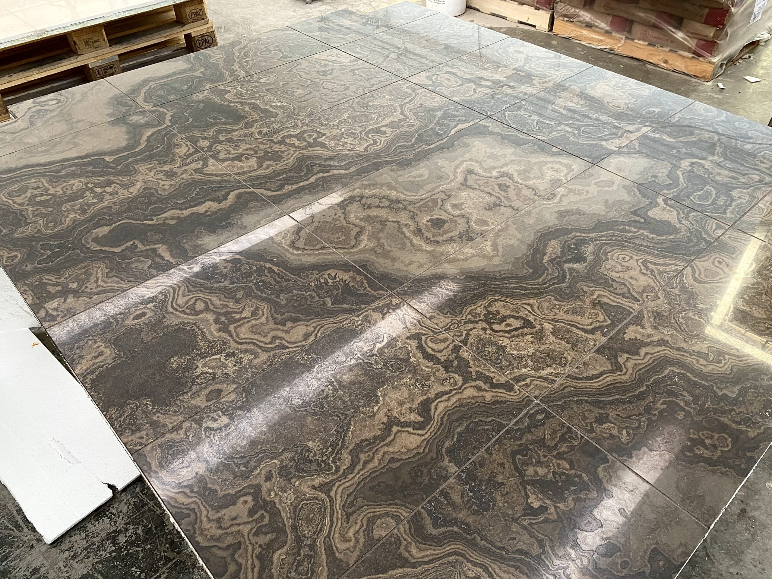 Il marmo di Calacatta Macchia Vecchia e il marmo Tobacco Brown sono i protagonisti di questo lavoro. Il nostro obiettivo è quello di rendere al meglio giustizia a questi materiali, andando a seguire nei tagli il più possibile le loro venature e colori naturali, in modo che il risultato sia sempre armonioso e unitario.