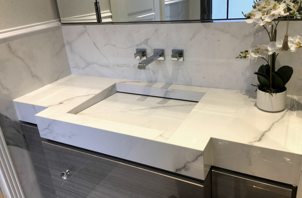 From pencil drawing to realization: Sarto follows every step. The result: inspectionable washbasins with internal basin in AISI304 steel, plus cutting of the front paneling made to measure from slabs.