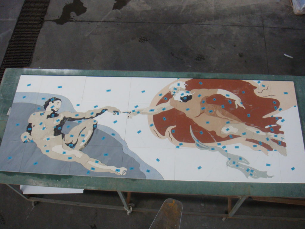 La nostra esperienza oramai pluridecennale nella realizzazione di loghi su misura ci ha portato a realizzare dal piccolo logo fino ad interi aeroporti. Realizziamo il disegno esecutivo finale, con compensazione della fuga a seconda della richiesta, dopodichè si effettua il taglio ad idrogetto, numerando i pezzi. Lo schema di posa sempre fornito permette una rapida installazione. Su richiesta possibilità di incollaggio su rete.